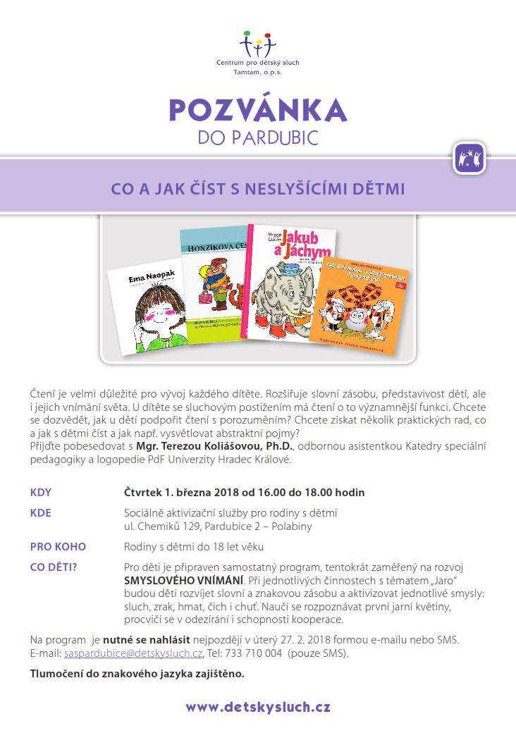 Tamtam nabízí besedu „Co a jak číst s neslyšícími dětmi.“ Účast pro rodiny s dětmi se sluchovým nebo kombinovaným postižením zdarma.